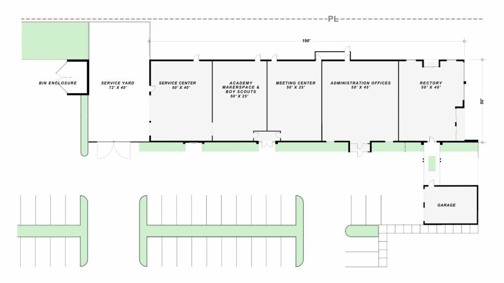 The Commons will be the heart of our parish campus, bringing together vital ministries, staff, and resources under one roof. It will provide a residence for our parish priest, offices for parish staff, ministry and meeting rooms, a Boy Scout Den and Academy Makerspace, maintenance and storage areas, and modern, accessible restrooms.